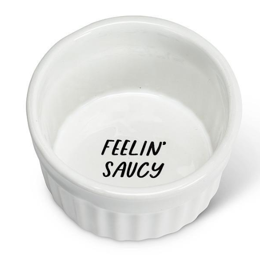 This Feelin' Saucy Ramekin is perfect for dipping, drizzling, and dunking. It adds a cheeky twist to serving sauces, condiments, or small bites. A must-have for entertaining or serving everyday meals with a side of sass! Not oven safe.
