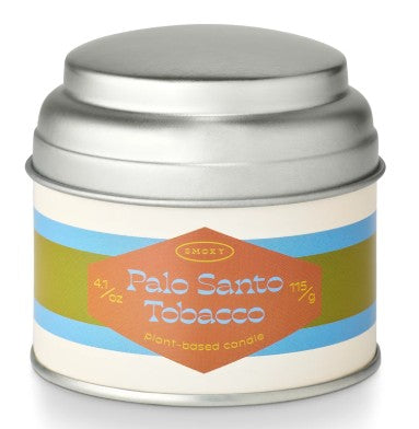 Blending the sacred, woody aroma of palo santo with rich tobacco accents, it delivers a warm, smoky fragrance that’s both grounding and inviting. The candle comes in a charming, outdoorsy metal tin—ideal for cozy nooks, rustic décor, or on-the-go ambiance.