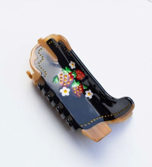Add a playful western twist to your hairstyle with our Strawberry Cowboy Boot Hair Claw Clip. This playful boot-shaped hair clip carries a sweet touch of nostalgia. The strawberry details bring back little childhood memories of simple joys, making it more than just an accessory—it’s a piece of happiness you can wear. Material:Acetate – lightweight yet strong, gentle on hair