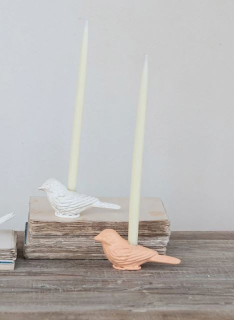 Add charm and elegance to any setting with this beautifully crafted cast iron bird taper holder.