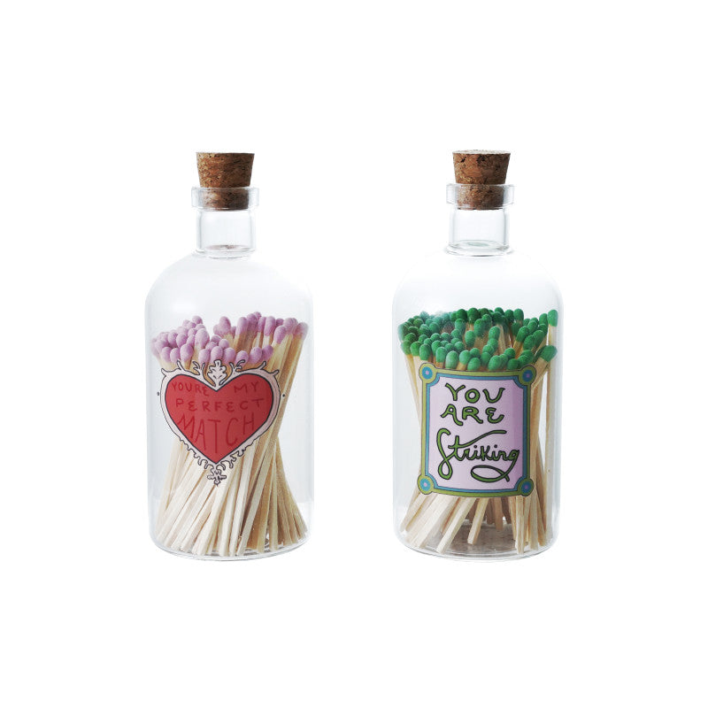 Glass Jar Matchstick Holder w Matches 2-3/4"Rd x 6-1/4"H