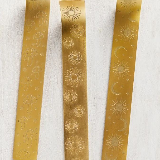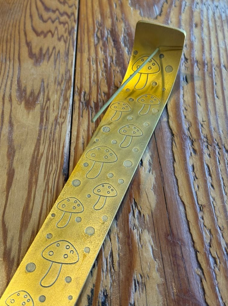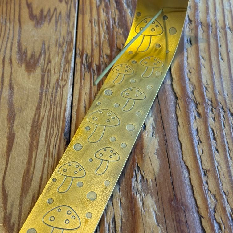 Discover a selection of striking gold-finished aluminium incense stick holders engraved with trendy designs of mushroom.