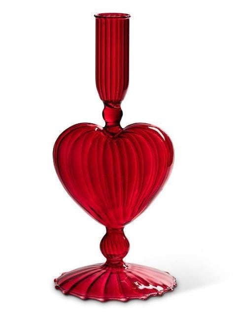 Add a touch of romantic elegance to your space with this delicate pink glass Heart Taper Holder, featuring a charming heart-shaped base. This beautifully designed holder reflects light gracefully, creating a warm and inviting ambiance when paired with a flickering taper candle.