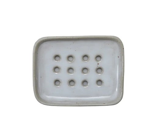 Keep your countertops clean and stylish with this minimalist white stoneware soap dish. Measuring 4 inches long by 3.25 inches wide, this rectangular dish is crafted from durable, high-fired stoneware with a smooth, matte finish.