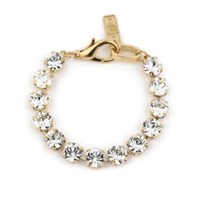 The Izzy Bracelet is sure to be a standout item in your jewelry collection. Classy without being too stuffy, it's the perfect balance of antique gold plating, brass-based metal, and sparkling high quality crystals. Crafted with care in Canada, it's "Made in the North" style at its finest. This bracelet is a dainty yet statement-making accessory!