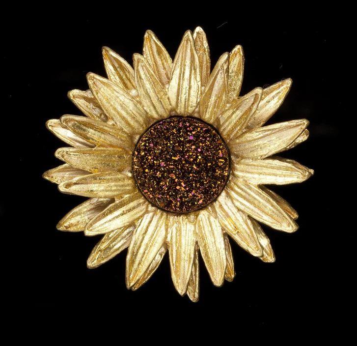 Materials: The flowers made of hand patinated bronze with gold leaf and druzy stones in the centre.