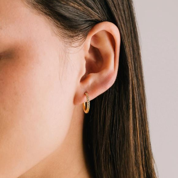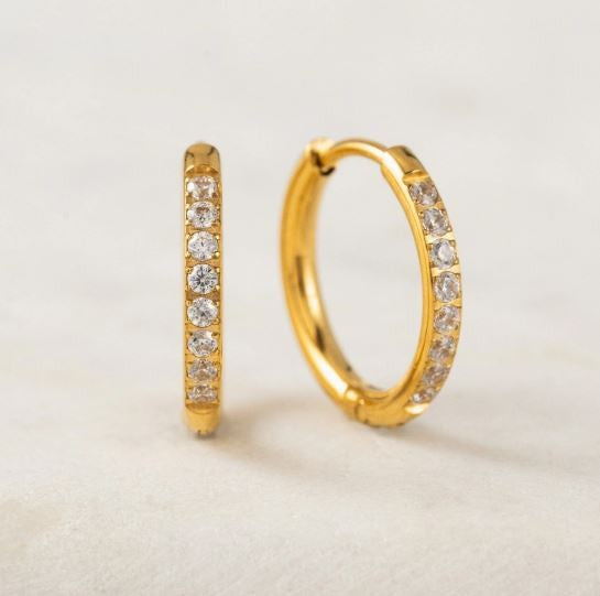 Everyday sparkles that you won’t want to take off. Cubic Zirconias set in sleek Stainless Steel & PVD, these waterproof essentials are your new favourite hoops.