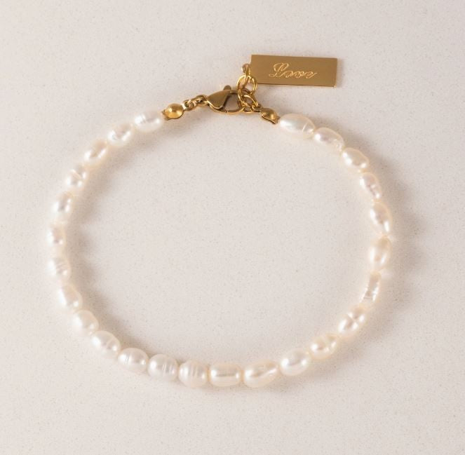The essence of paradise in a beaded pearl bracelet. Made with PVD and stainless steel, you can wear this waterproof bracelet anywhere.