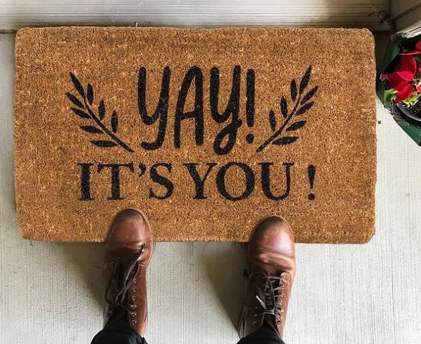 Greet visitors with a cheerful touch using our "Yay, It's You" Doormat. This delightful and inviting mat features the phrase "Yay, It's You" in an eye-catching design, adding warmth and character to your entryway. Crafted from durable coir, it's suitable for both indoor and outdoor use. Measuring 18x30 inches, it offers a practical and charming solution to welcome guests with a smile.