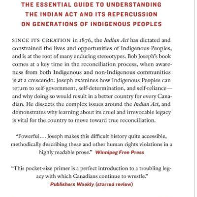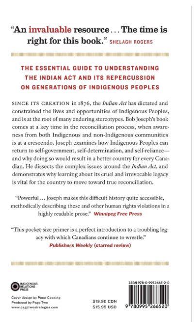 Since its creation in 1876, the Indian Act has shaped, controlled, and constrained the lives and opportunities of Indigenous Peoples, and is at the root of many enduring stereotypes. Bob Joseph's book comes at a key time in the reconciliation process, when awareness from both Indigenous and non-Indigenous communities is at a crescendo. Joseph explains how Indigenous Peoples can step out from under the Indian Act and return to self-government, self-determination, and self-reliance - and why doing so would result in a better country for every Canadian. He dissects the complex issues around truth and reconciliation, and clearly demonstrates why learning about the Indian Act's cruel, enduring legacy is essential for the country to move toward true reconciliation.