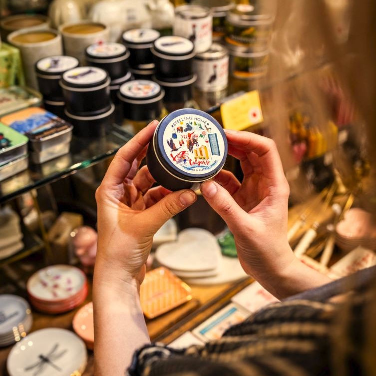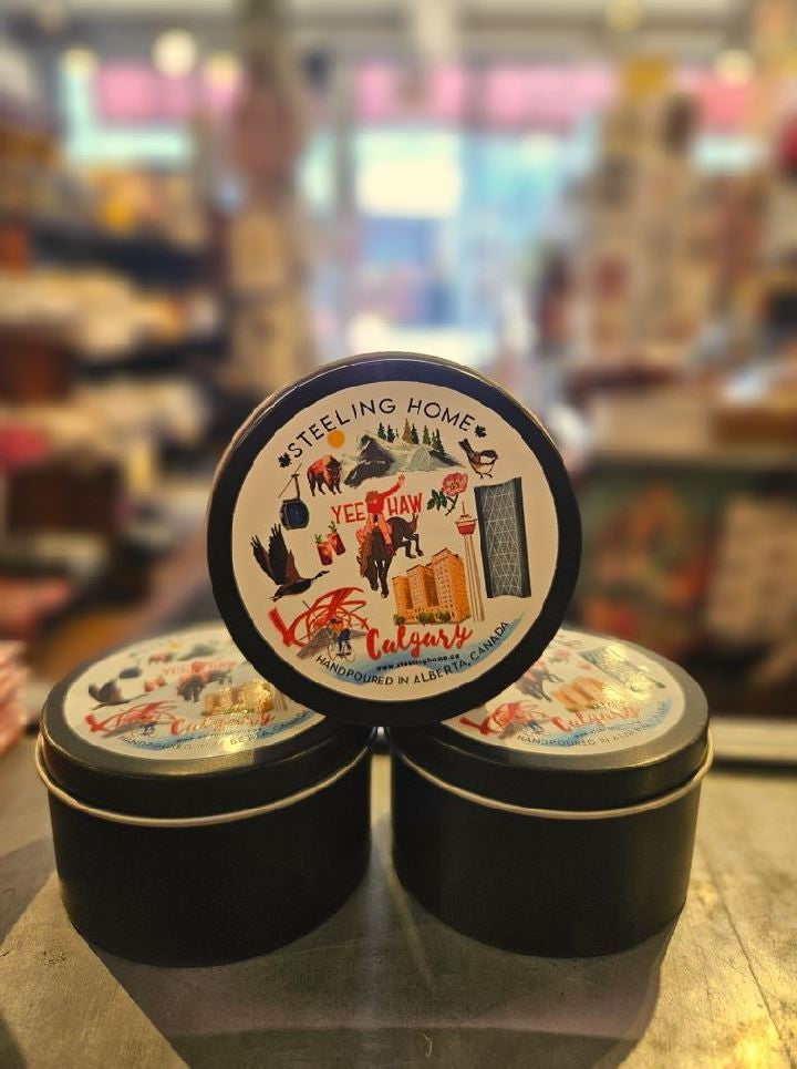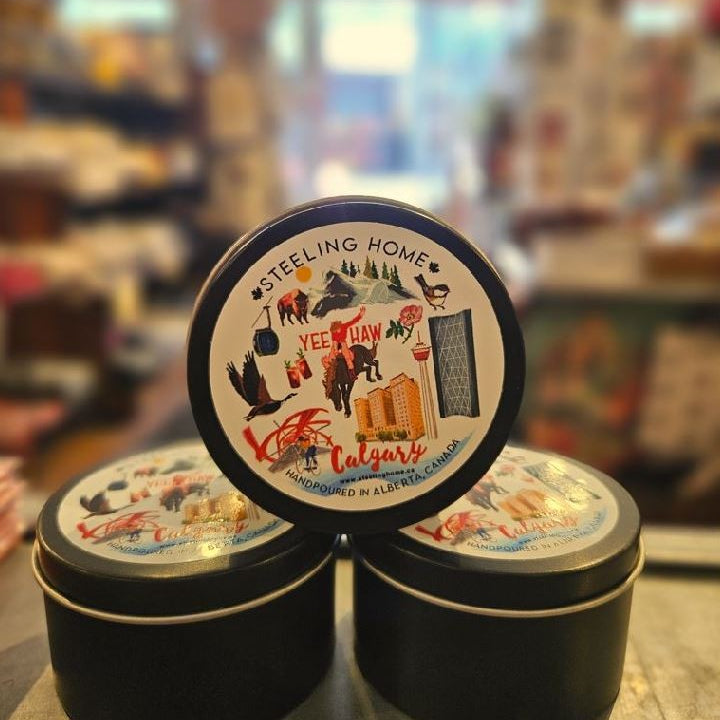 A Steeling Home Exclusive Design. This candle features iconic landmarks and elements of Calgary all in a unique design. Locally designed in Canada.