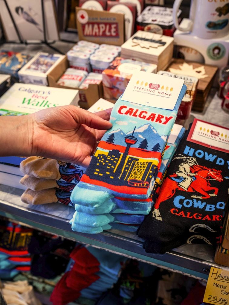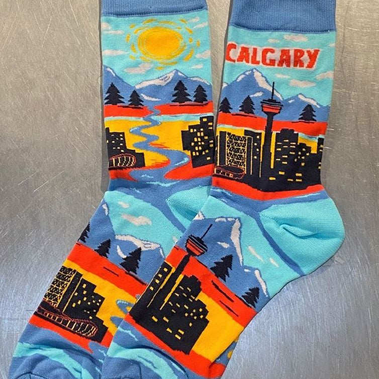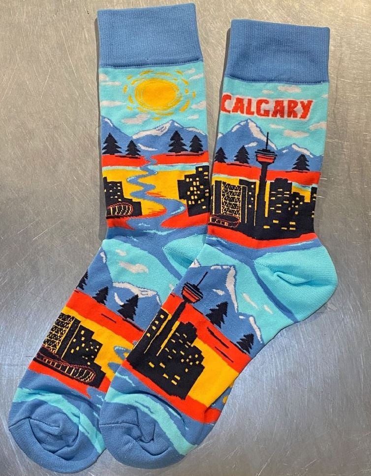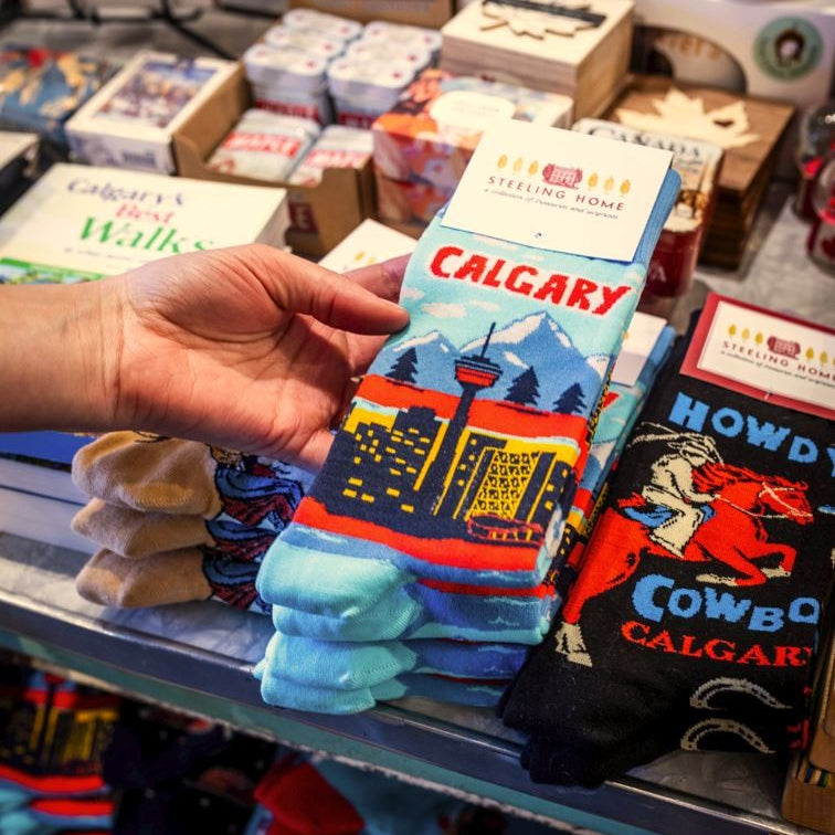 Steeling Home Exclusive Socks, designed locally! Celebrate Calgary's skyline and iconic tower.