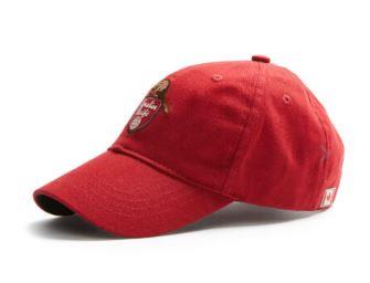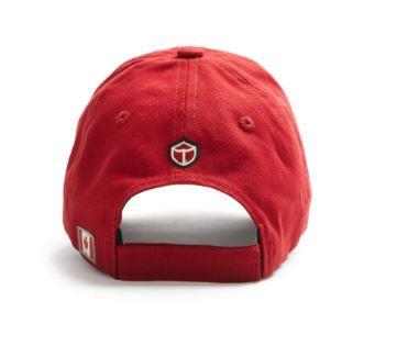 Felt appliqué logo with direct embroidery. Woven Canada flag patch on back.