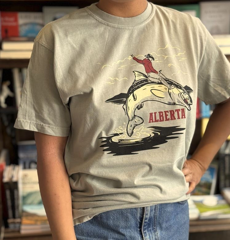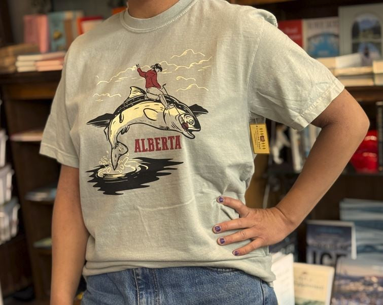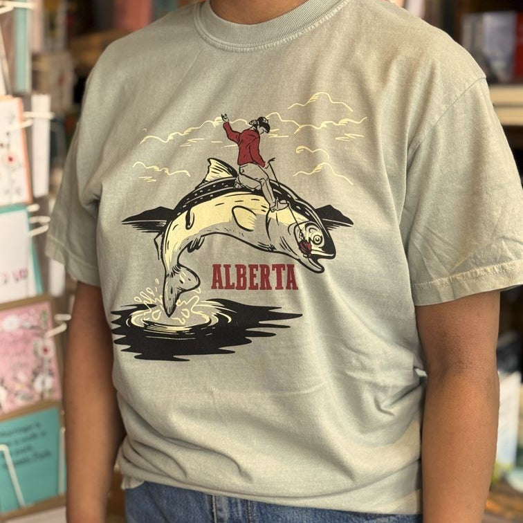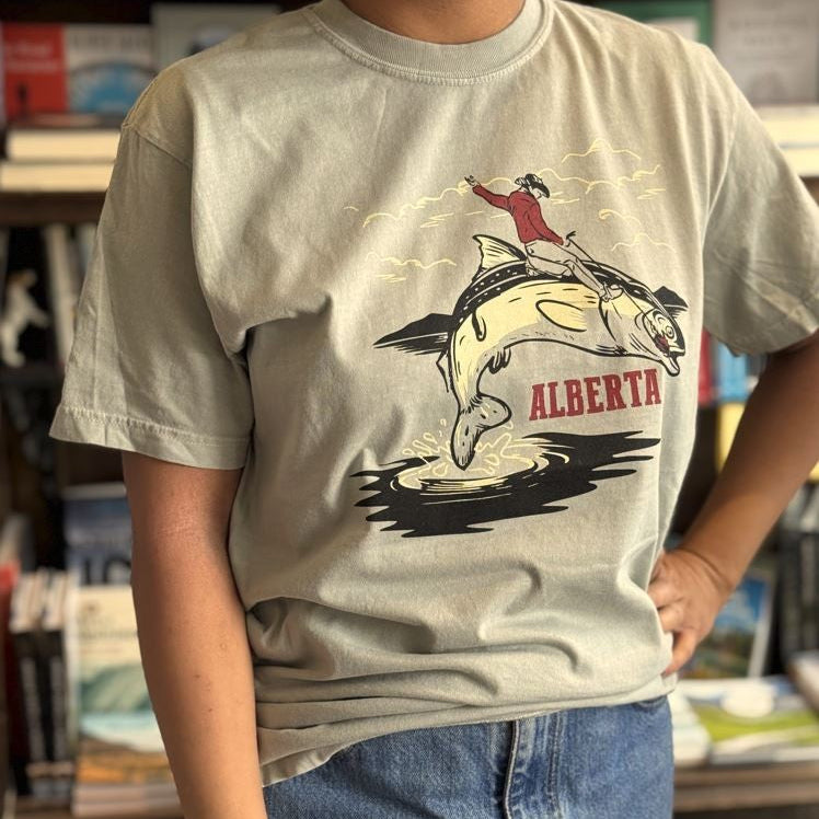 Only in Alberta could a cowboy wrangle a fish—and look this cool doing it. A Steeling Home original, this tee is printed in Canada and packed with prairie-meets-lake energy. Weird, wonderful, and 100% conversation-starting.