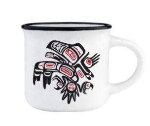 A 3oz. ceramic mug ith a Running Raven design by Morgan Asoyuf: perfect for espresso or your favourite beverage!