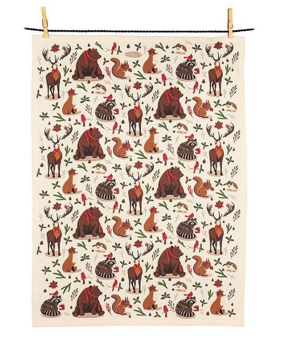 Help make your kitchen feel more fun and festive for the holidays with this delightful Winter Animals Tea Towel. Crafted out of cotton, this natural-coloured tea towel features a charmingly illustrated assortment of forest creatures accented with holly, poinsettias and pine sprigs for a colourful complement to your cleaning and your kitchen decor. Machine washable, and dryer safe.