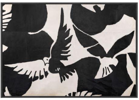 A stunning use of negative space, this Braque inspired piece uses black and ivory to convey shape and contrast for a really dynamic work. You’ll find it has the strength to hold a room together.