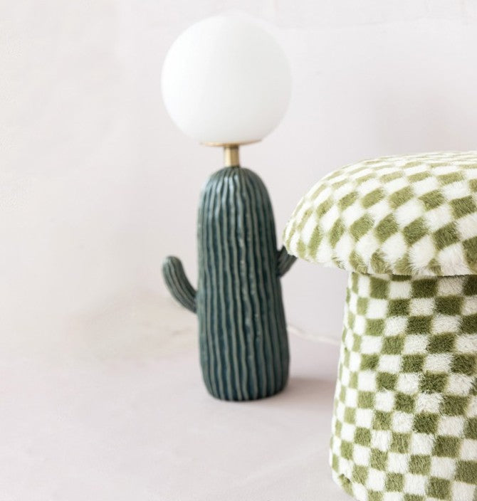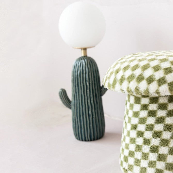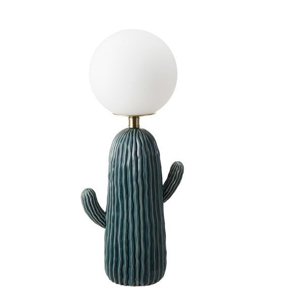 Bring a touch of the desert into your home with this charming cactus-shaped table lamp. Crafted from durable stoneware, this lamp stands at 9-1/4" tall and boasts intricate detailing that closely resembles a real cactus. The lamp is designed with an inline switch for convenient operation. Ideal for adding a whimsical flair to any room, this lamp is bound to spark conversations. Illuminate your space with this playful and trendy cactus lamp and infuse your home with a touch of desert chic.