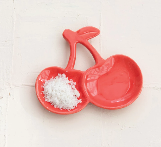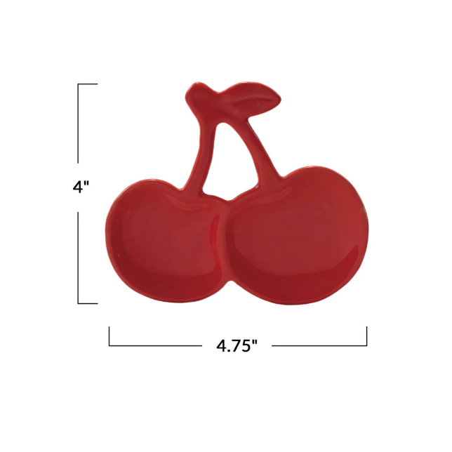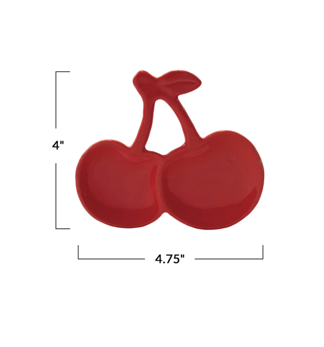 Add a fun and vibrant touch to your table with this 4-3/4"L x 4"W ceramic dish, designed in the shape of two plump cherries. Finished in a rich red glaze, this eye-catching piece is perfect for serving snacks, candies, or simply as a charming decorative accent. Its playful design makes it a great conversation starter, while its durable ceramic construction ensures it’s both functional and stylish.