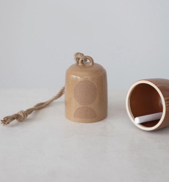 The Bell is made of stoneware and measures 3-1/2" Round x 6"H Stoneware Bell