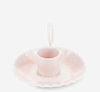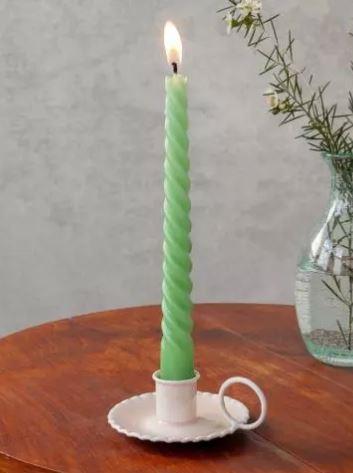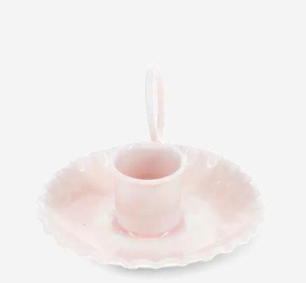 This pink chamberstick candle holder has a vintage design with a modern twist, perfect for adding a touch of charm to your dining table or mantelpiece. The loop handle makes it easy to carry and hold, and the ruffled-edge base is designed to catch any dripping wax (in style).