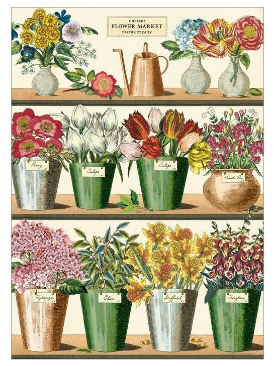 Brighten up any room with this flower market poster full of colorful blooms and vintage charm. It’s like a stroll through your favorite garden, but without the pollen allergy!