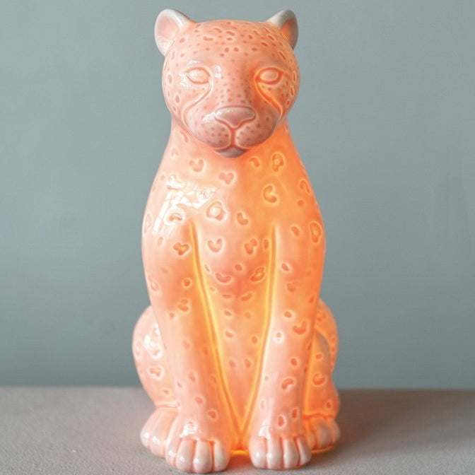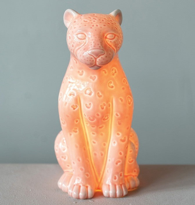 Add a touch of wild elegance to your home with this stunning stoneware leopard table lamp.