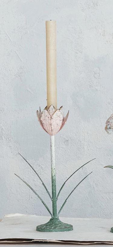 Painted Metal Vintage Reproduction Flower Shaped Taper HolderDistressed finish