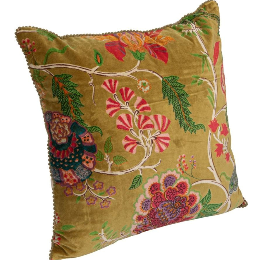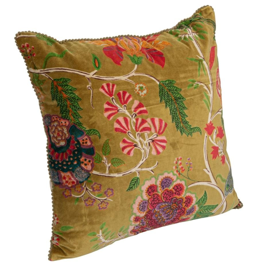Bring a burst of color and texture to your space with this 20" Square Cotton Velvet Pillow, featuring a vibrant floral print and playful mini pom pom trim. Each pillow showcases a unique multicolor design on soft, plush velvet—making every piece one-of-a-kind.