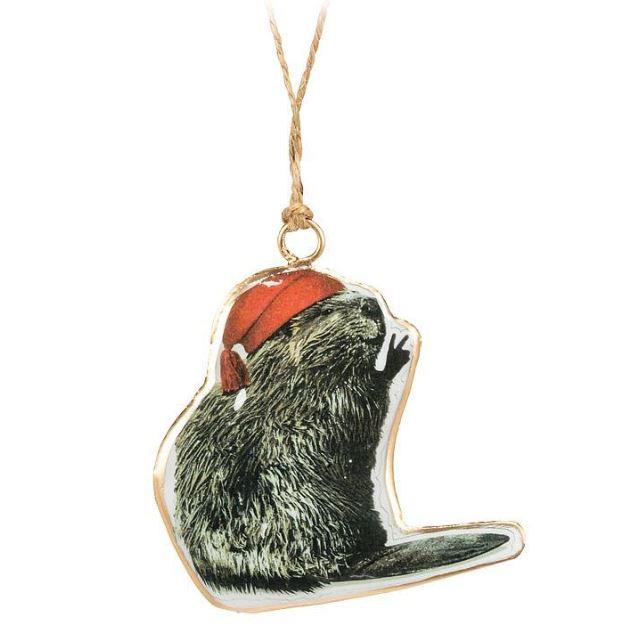 Add some humour to your holiday decor with this whimsical Voyageur Beaver double-sided ornament. Crafted out of metal, this ManMade ornament – Canadian artist Doug Jackson's line of products inspired by vintage maps, photographs and Canadiana – features a friendly toque-wearing beaver throwing up the peace sign for a whimsical complement to any Christmas tree. Other ManMade ornaments also available.