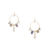 These statement earrings feature an organic freshwater pearl with hand-cut gemstones, artfully crafted into a unique hoop style earring. Each pair is crafted in our Vancouver studio using hand-cut Aquamarine, Labradorite and Iolite gemstones with recycled brass.