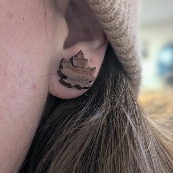 Maple Leaf Wood Earrings
