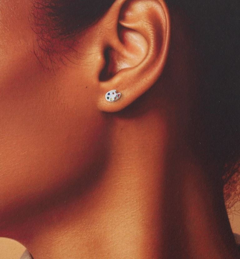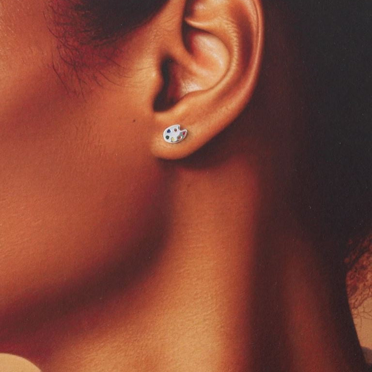 Celebrate creativity in style with these charming artist palette stud earrings, crafted from sterling silver. Featuring tiny paint wells and delicate detailing, they’re the perfect accessory for artists, dreamers, and color lovers alike.