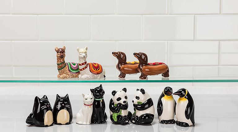Brighten the bare accessories on your dinner table with this delightful set of Black Bear Salt & Pepper Shakers. Crafted out of ceramic, this pair of adorable bears — one sitting, one walking – is just what you need to spice up your meals and your kitchen decor. Other animal-shaped salt & pepper shaker sets also available.