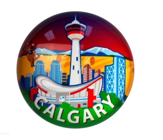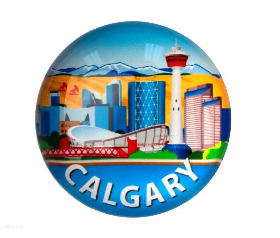 Bring a touch of Calgary charm to your fridge or office with this set of 4 crystal dome magnets. Each magnet features a vibrant Calgary scene beneath a glossy glass dome, combining eye-catching detail with a sleek, polished finish—perfect for souvenirs or local pride.