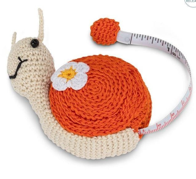 Our handcrafted crochet snail measuring tape will make everyday measuring tasks fun and playful! Lovingly made with colorful yarn and meticulous detail, each one of these pocket-sized pals doubles as a fully functional retractable measuring tape. Each tape extends up to 60 inches (150 cm) and retracts smoothly with a gentle press of the center. Compact and lightweight, they fit easily in your pocket, sewing basket, or craft kit – perfect for sewing, knitting, crafting, or simply spreading smiles.