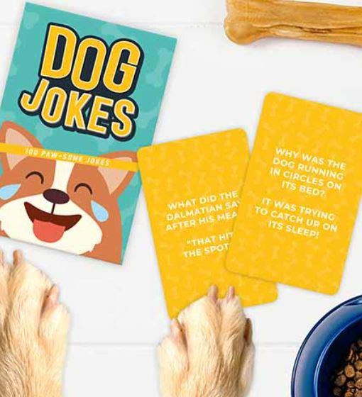 This pack is filled with 100 paw-some dog puns & jokes! It is a perfect way to cheer someone up if they’re having a ruff day.