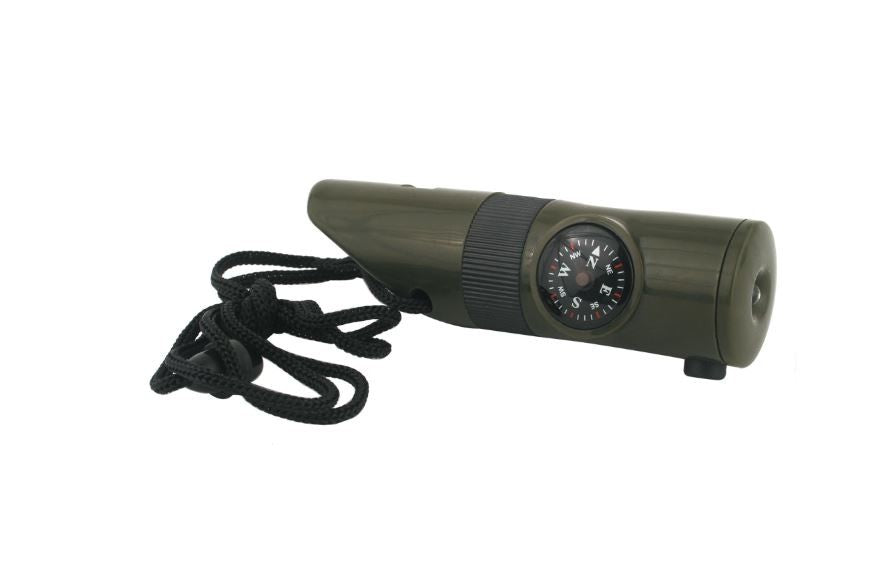 You never know when you'll be in a survival situation! Use this life saver to be prepared. Includes whistle, compass, flashlight, magnifying glass, mirror and storage compartment.