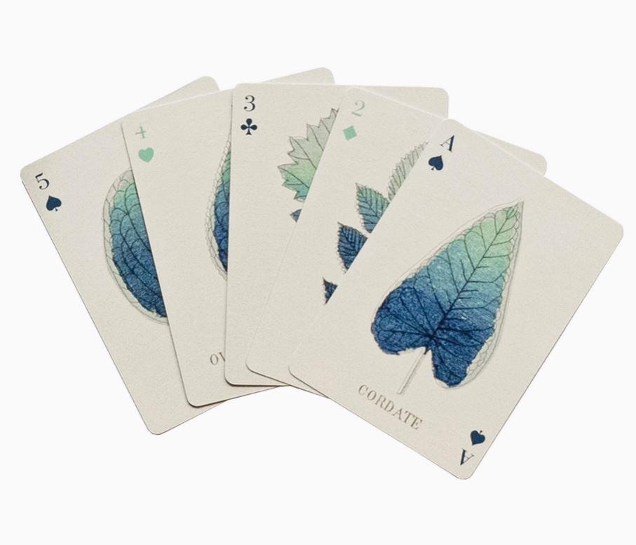 This Set of Two 52-Deck Playing Cards features unique artwork reproduced from illustrations by a Japanese artist first published in a book about botany in 1873. Roomytown's design team in Bath, UK, have carefully adapted and enhanced the intricate blue and green coloured leaf illustrations and applied them to each of the playing cards in this Set of Two 52-Deck Playing Cards that come stored in a premium quality flip-top card hinged box.