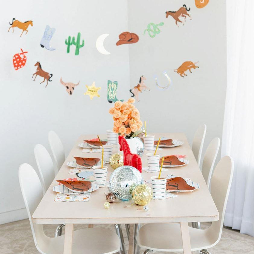 Calling all cowboys! Our "Yeehaw" collection has everything you need to gear up for your next rodeo. These thingamajigs are all you need to transform your party into the wild west! What exactly are thingamajigs, you ask?! They are our favorite do-it-all party decorations! String them together to make a garland, attach them to balloons, hang them on the wall...you decide!