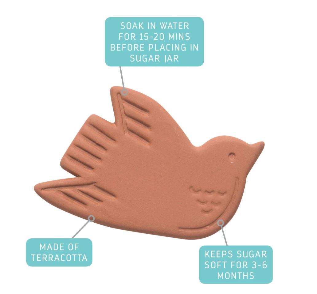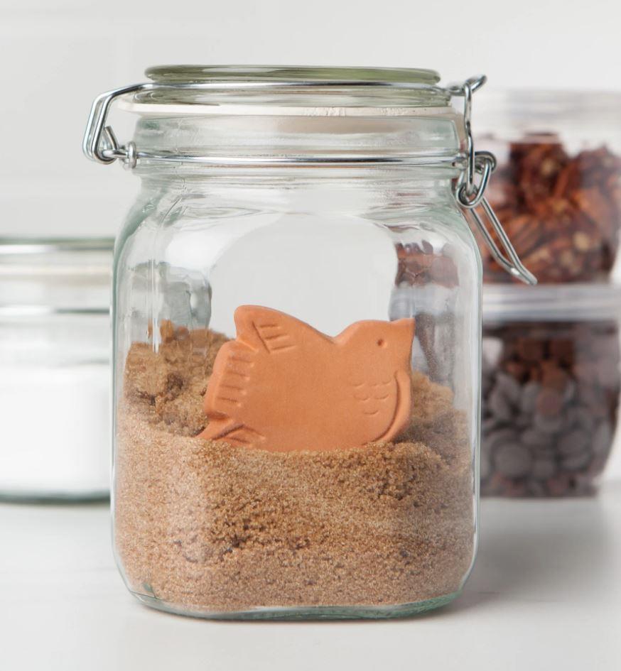 Find a friendly creature nestled in your jar of brown sugar. High-fired and food-safe terracotta ensures sugar stays soft and maintains moisture for 3-6 months. Soak saver for 15-20 minutes, pat dry and then place in the jar.