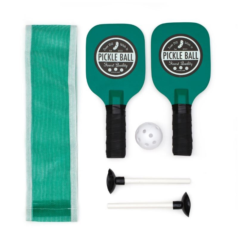 Are you a full size pickleball champion? Try our desktop pickleball and break a sweat from your desk! This is an easy to set up desktop pickleball set that includes two wooden paddles, 1 ball, and a net that attaches to your desk with suction cups.