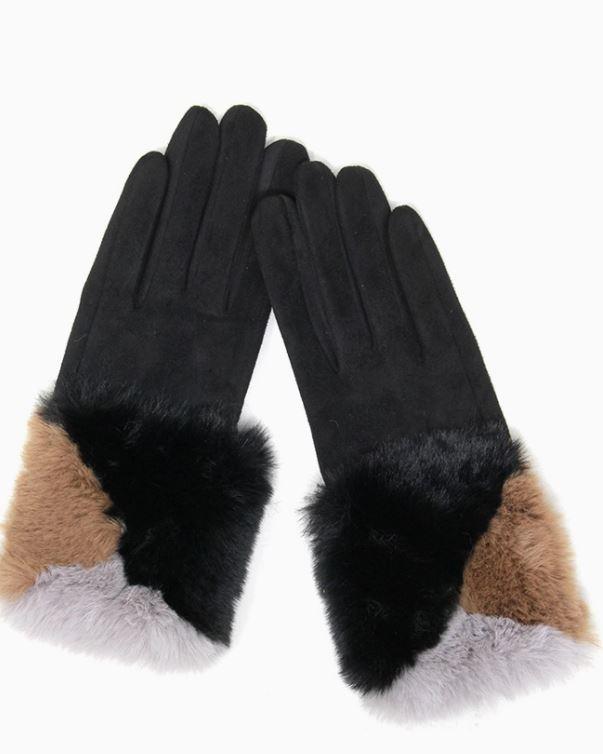 Solid suede with soft colorful faux fur cuff smart gloves90% polyester 10% spandexOne sizeMade in China