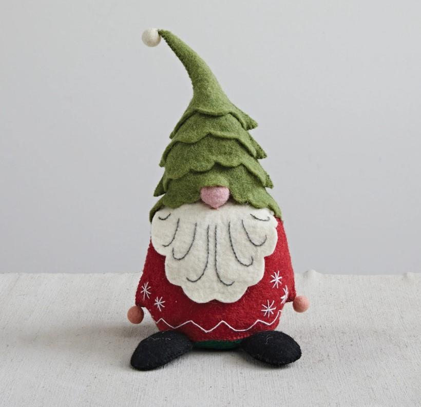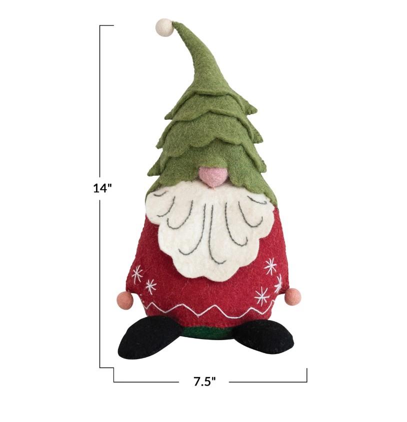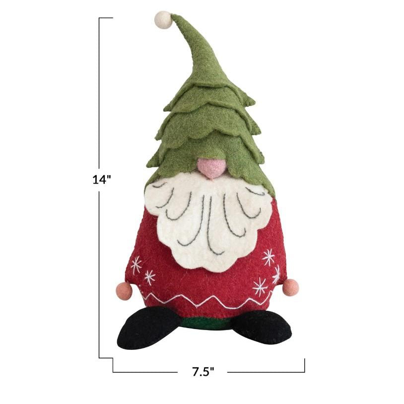 7-1/2"L x 7"W x 14"H Handmade Wool Felt Gnome, Multi Color
