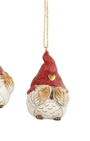 Peeking is off-limits! This adorable owl hides its eyes with its wings under a cheerful red hat, bringing a touch of whimsy and mystery to your holiday décor.