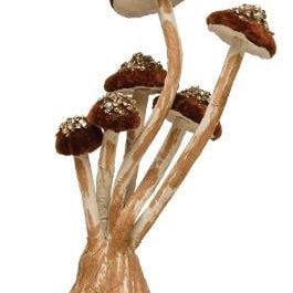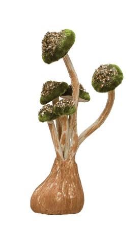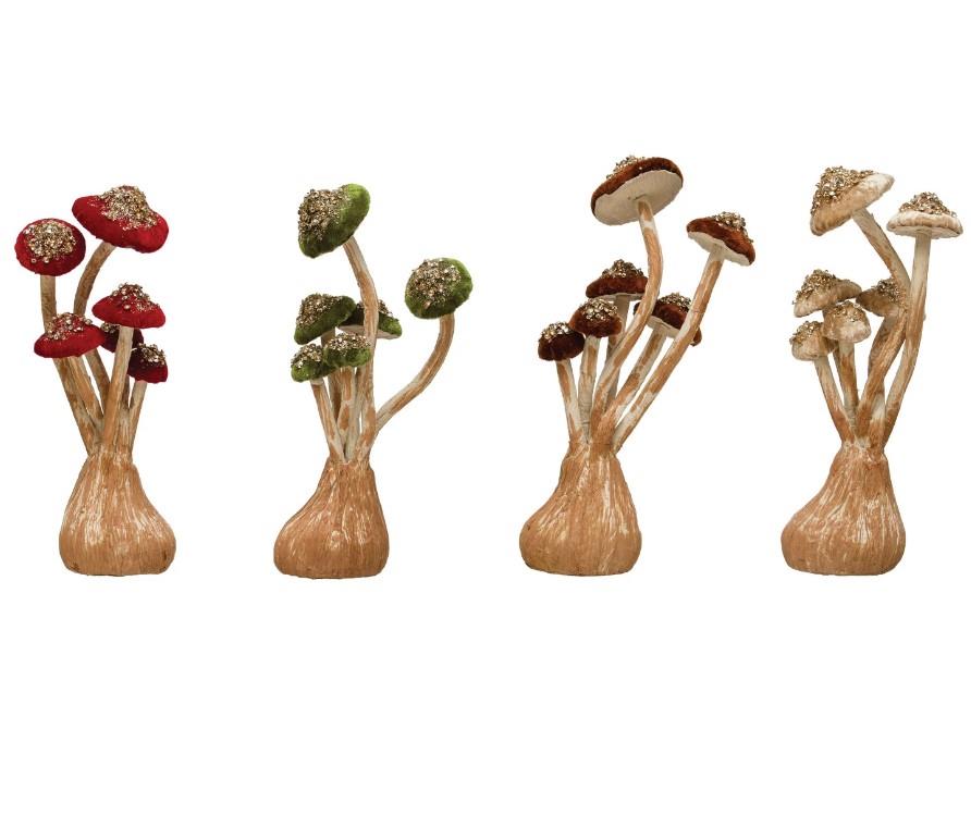 8-3/4"H - 11-1/2"H Velvet, Foam & Paper Mushroom w/ Gold Glitter, Sequins & Jewels, 4 Colors, 4 Styles