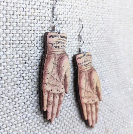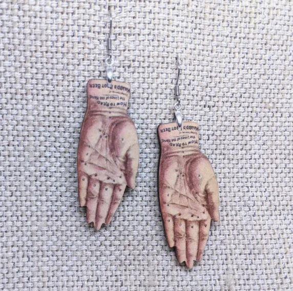 The Palm Reader Earrings are small-batch earrings that make the perfect gift for any palm reading or tarot enthusiast in your life. Give your outfit a mystical touch with this unique accessory. Measuring approx. 1.75 inch. Made of laser cut wood featuring stainless steel hooks.