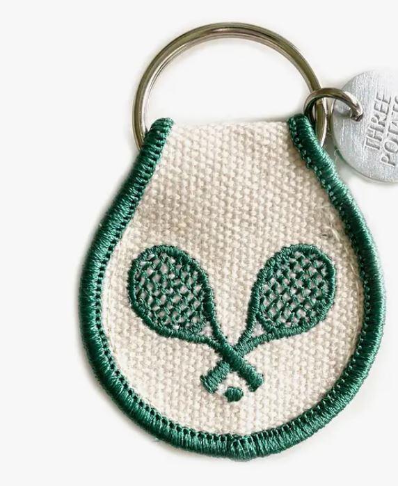Retro Inspired Great gift Your new favorite accessory Embroidered Natural Cotton Patch Keychain Double-Sided Embroidery Metal Split Keyring. 2.5" x 1.5"