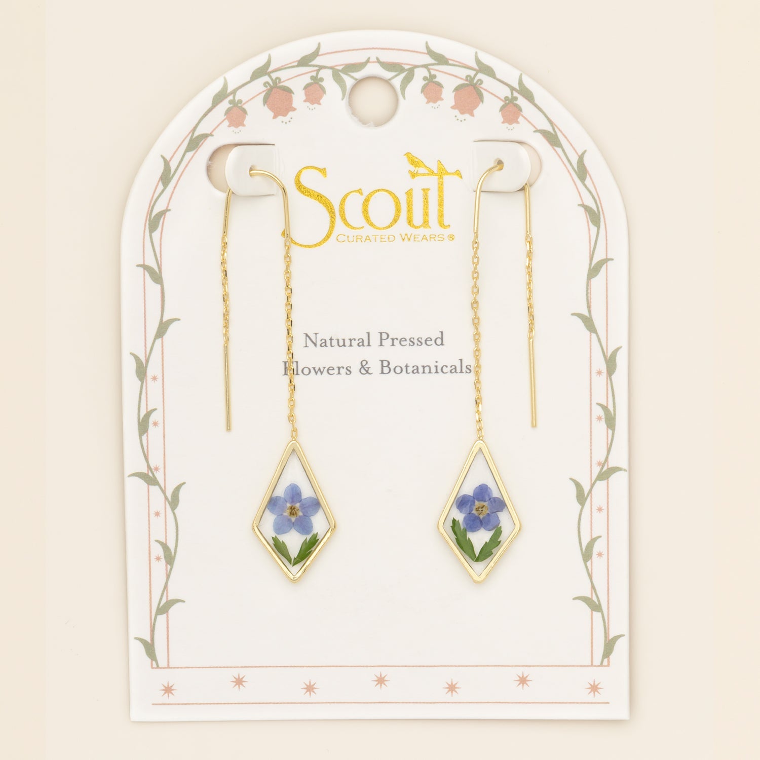 Thread Earrings - Pressed Flower - Blue Forget Me Not