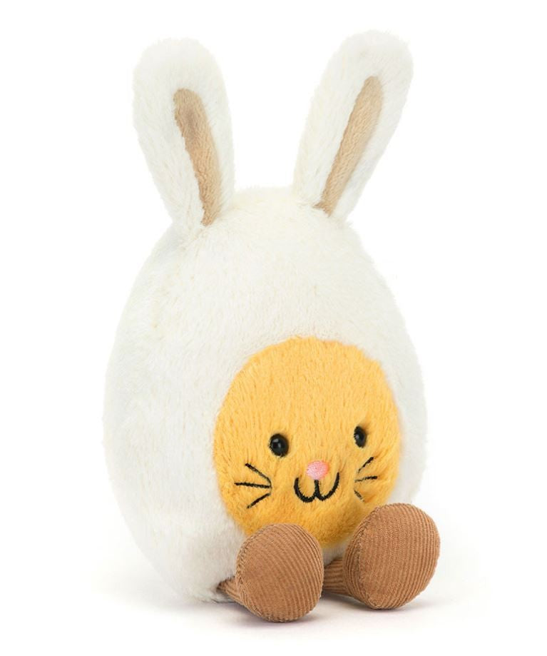 Amuseables Bunny Egg is all dressed up for the spring! Soft and sweet in cream and yellow fur, this boiled egg bunny has long cream ears with beige insides, and embroidered whiskers and nose.